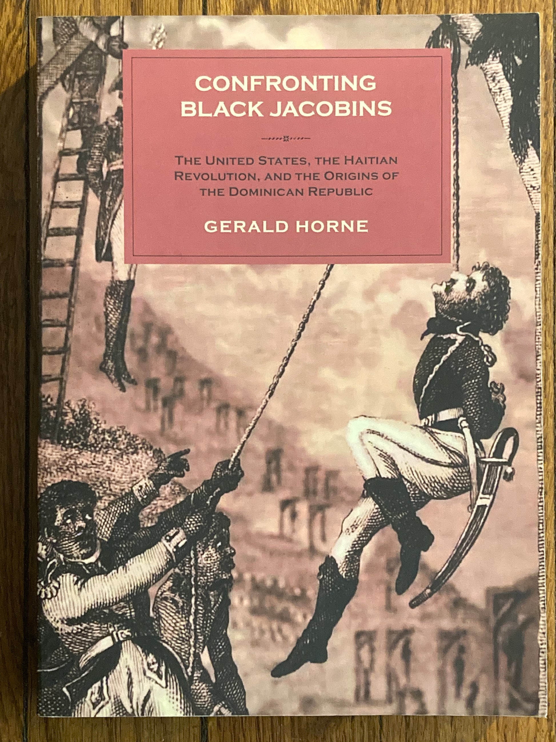 ISBN 978-1-58367-5. Gerald Horne, Confronting Black Jacobins: The United States, the Haitian Revolution, and the Origins of the Dominic Republic. New York: Monthly Review Press, 2015. Near fine, Paperback. Warmly inscribed by Horne on the half-title.