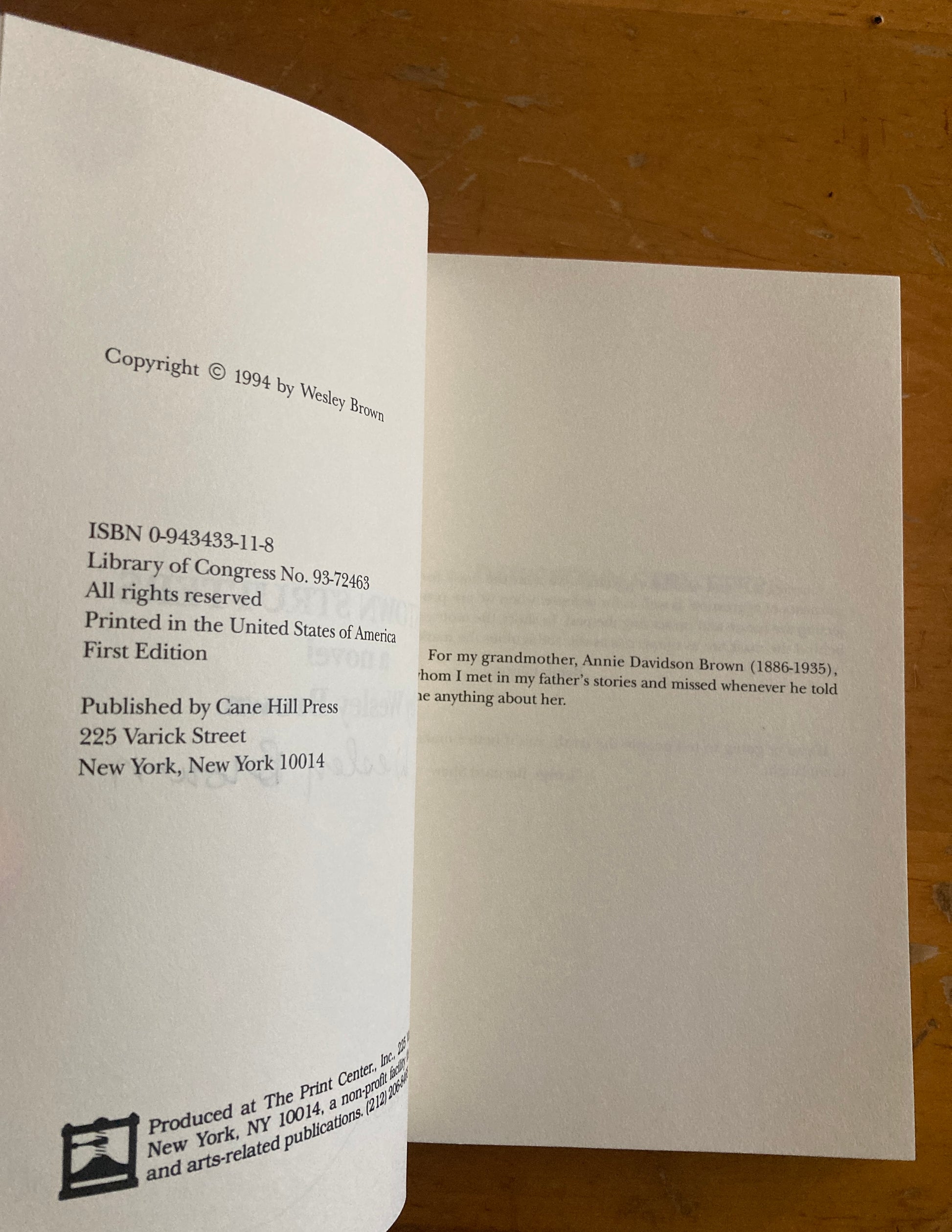 Wesley Brown, Darktown Strutters, Paperback Spine and Interior VG. New York: Cane Hill Press, 1994. Signed by Brown on half-title.
